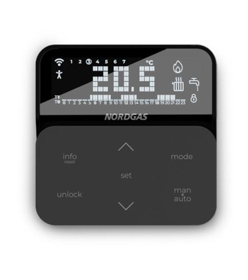 Il nuovo IoTherm può essere considerato l’evoluzione del remoto standard Nordgas. Il nuovo design introduce la funzione di funzionamento smart power supportata dal protocollo di comunicazione Opentherm, che consente di controllare un sottosistema di retroilluminazione LCD migliorando le capacità del vecchio remoto.
